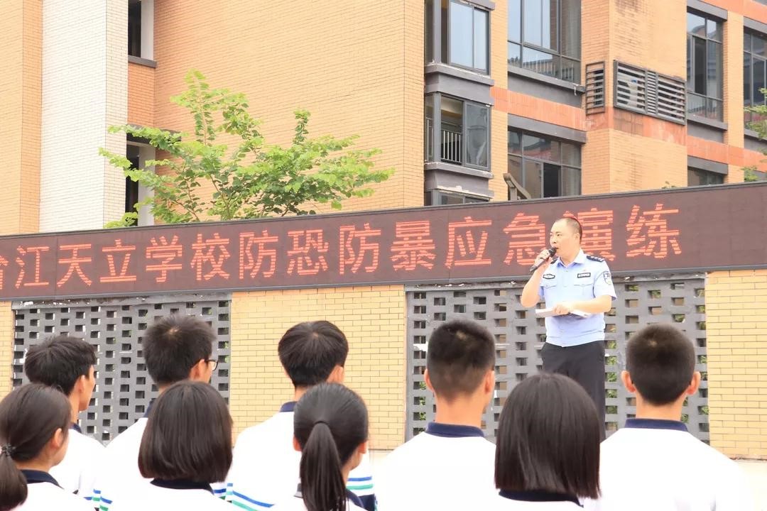 在新中國(guó)成立70周年大慶前夕,合江天立學(xué)校全校師生與合江鎮(zhèn)派出所警官在學(xué)校操場(chǎng)聯(lián)合開(kāi)展了防恐防暴應(yīng)急處置演練。通過(guò)本次演練,學(xué)校的應(yīng)急事件處置制度、流程得到充分的檢閱和完善,為學(xué)校處理類似事件奠定了堅(jiān)實(shí)基礎(chǔ),筑牢了校園安全防線。