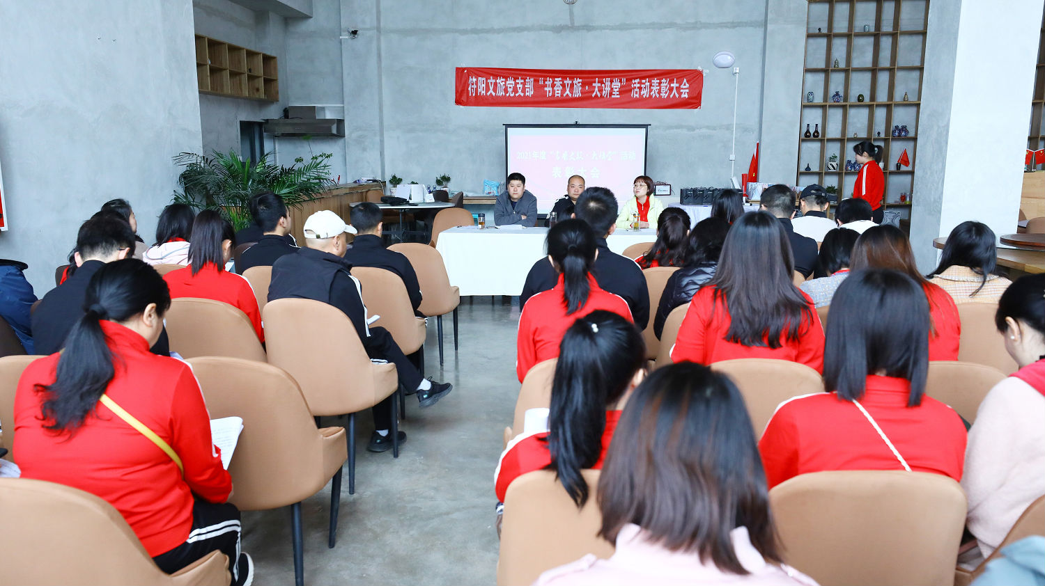 2022 年 3 月 23 日 上 午 , 符 陽 文 旅 黨 支 部 在 龍 掛 山 見 禧 山 語 召 開 2021 年 度 “ 書 香 文 旅 · 大 講 堂 ” 活 動 表 彰 大 會 , 會 上 支部書記譙棣升通報了活動開展情況, 同時進(jìn)行了表彰獎勵, 并要求 2022 年再接再厲, 以更豐富的形式, 更精彩的內(nèi)容, 在開放、 互動、 熱烈的課堂氣氛中獲取知識, 助推動公司高 質(zhì)量發(fā)展。