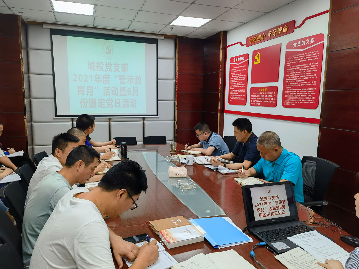 2021年6月9日下午,城投黨支部組織全體黨員同志、中層及以上領導干部、入黨積極分子等重點崗位人員開展2021年度“ 警示教育月 ”活動暨6月份固定黨日活動。