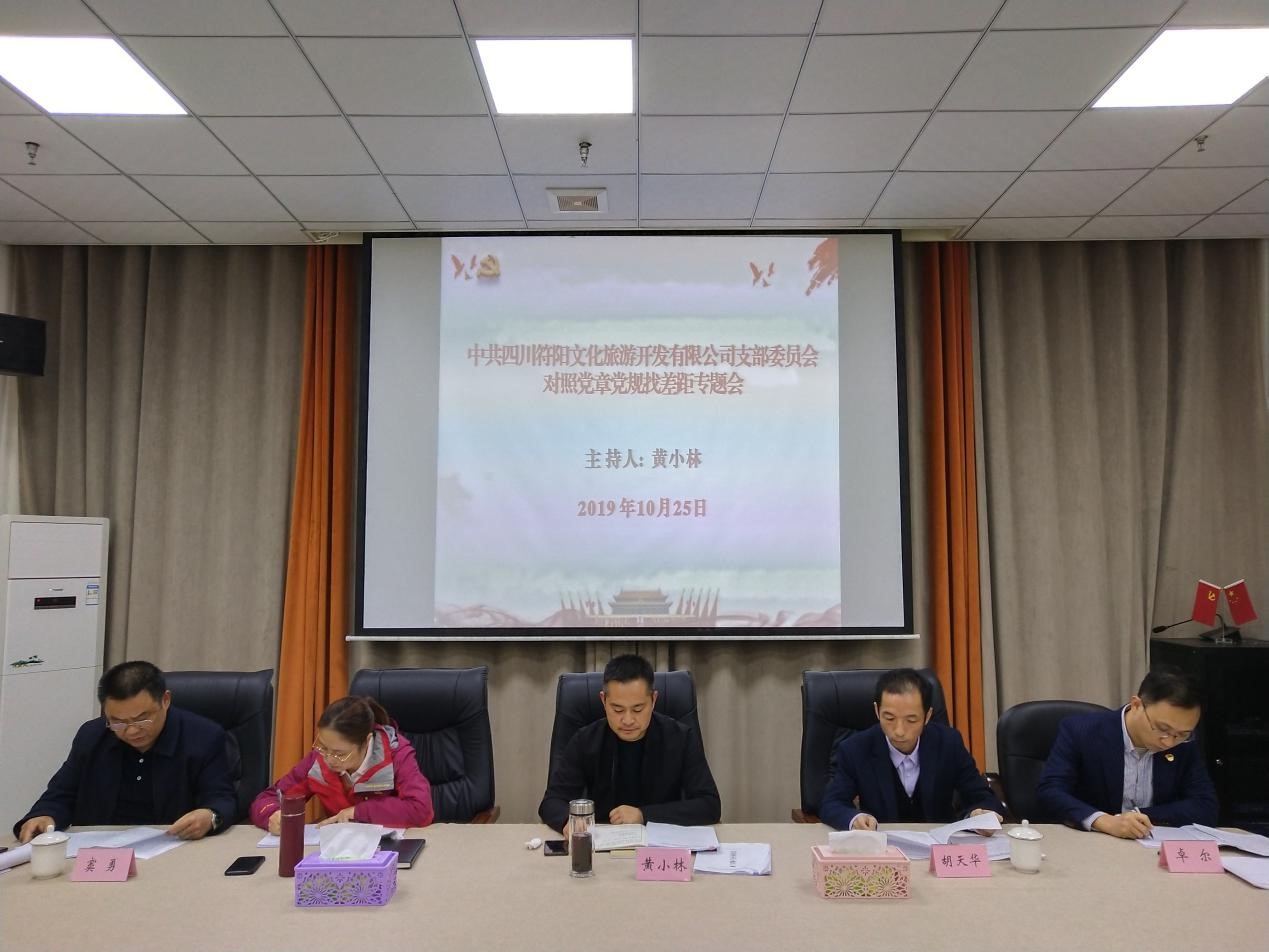 2019年10月23日下午,中共合江縣城市開(kāi)發(fā)投資(集團(tuán))有限公司支部召開(kāi)對(duì)照黨章黨規(guī)找差距專(zhuān)題會(huì)議...
