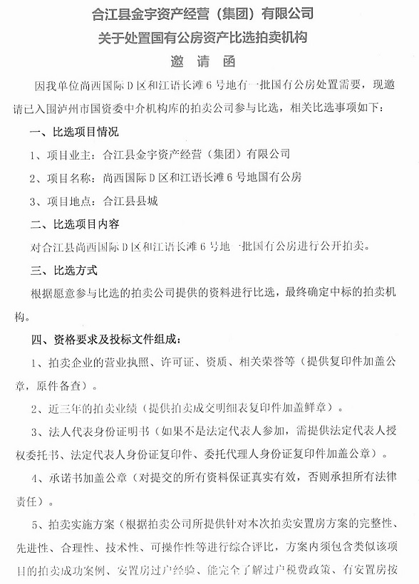 關(guān)于金宇公司處置國(guó)有公房資產(chǎn)比選拍賣(mài)機(jī)構(gòu)的公告