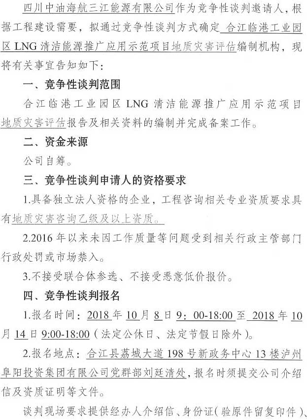 合江臨港工業(yè)園區(qū)LNG清潔能源推廣應(yīng)用示范項目地質(zhì)災(zāi)害評估單位競爭性談判公告.docx