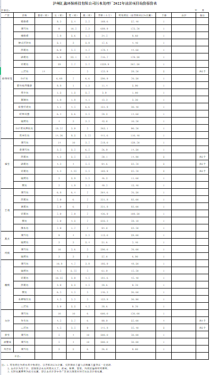 附 件 : 瀘 州 匯 鑫 環(huán) 保 科 技 有 限 公 司 污 水 處 理 廠 2022 年 清淤項目詢價報價表