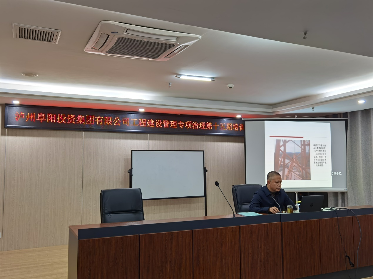 2021 年 10月28日,瀘州阜陽投資集團(tuán)有限公司開展工程建設(shè)管理專項(xiàng)治理第十五期培訓(xùn),培訓(xùn)會議由廣源達(dá)公司董事長張學(xué)彬主講,各級公司工程項(xiàng)目管理人員參加。