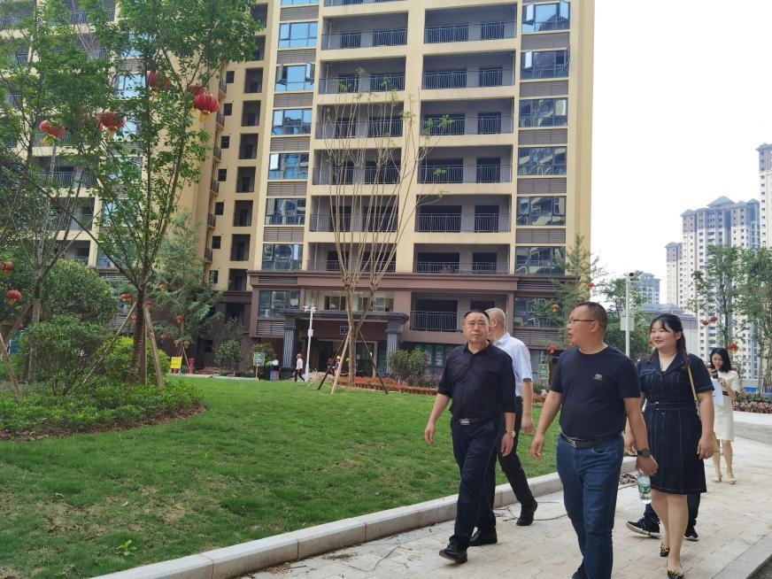 2021年5月11日,財監(jiān)局局長楊向前率隊調研鑫晟學府項目建設銷售情況。調研組一行實地查看了中庭建設情況、樣板間裝修情況,并詳細了解了項目銷售情況。楊局強調:鑫晟學府項目作為縣國企第一個房開項目,一定要及時完成建設銷售工作,體現經濟效益。