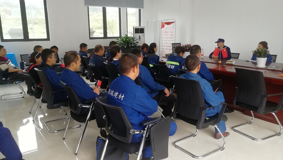為加強(qiáng)消防知識(shí)培訓(xùn),提高安全意識(shí),檢驗(yàn)企業(yè)消防安全應(yīng)急預(yù)案和快速反應(yīng)機(jī)制,國(guó)瑞建材于2019年10月25日上午10時(shí),組織開展消防安全知識(shí)培訓(xùn)及演練活動(dòng)。合江縣消防救援大隊(duì)到現(xiàn)場(chǎng)培訓(xùn)和指導(dǎo)。