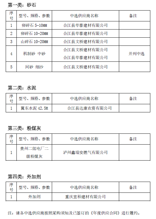 合江縣國(guó)瑞建材有限公司商品混凝土攪拌站生產(chǎn)原材料采購(gòu)中選公告