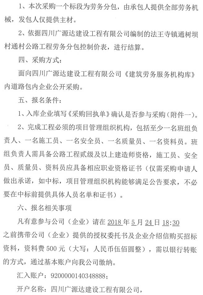 四川廣源達(dá)建設(shè)工程有限公司法王寺鎮(zhèn)通樹壩村通村公路工程勞務(wù)分包企業(yè)采購公告.doc