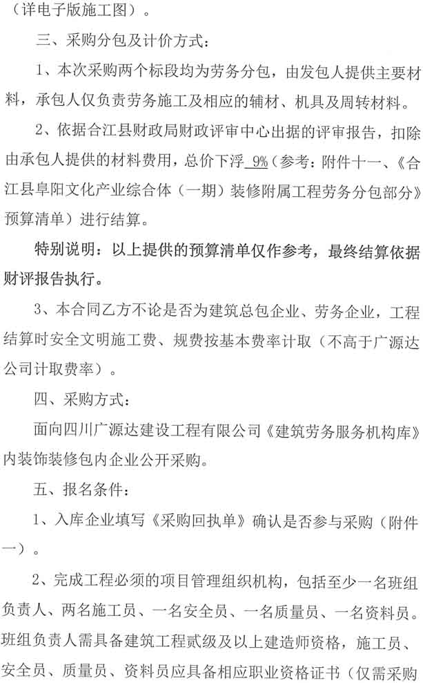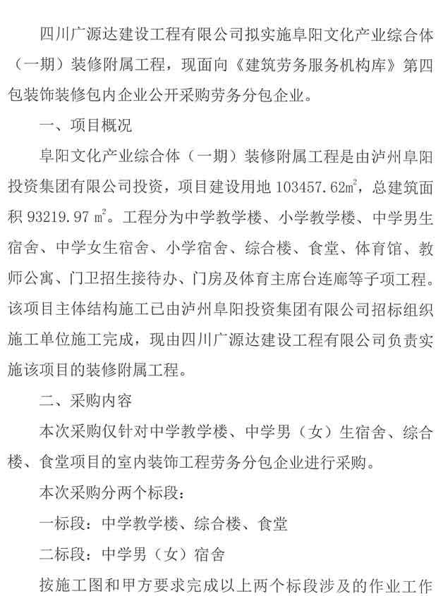 阜陽文化產(chǎn)業(yè)綜合體(一期)裝修附屬工程勞務分包企業(yè)采購公告.docx