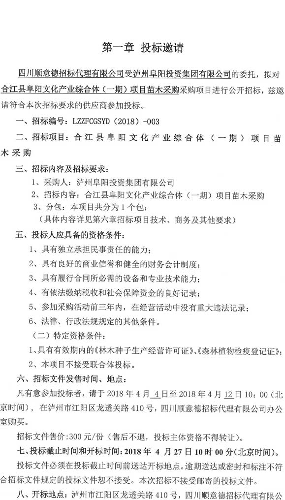投標(biāo)邀請(qǐng):合江縣阜陽文化產(chǎn)業(yè)綜合體(一期)項(xiàng)目苗木采購(gòu)