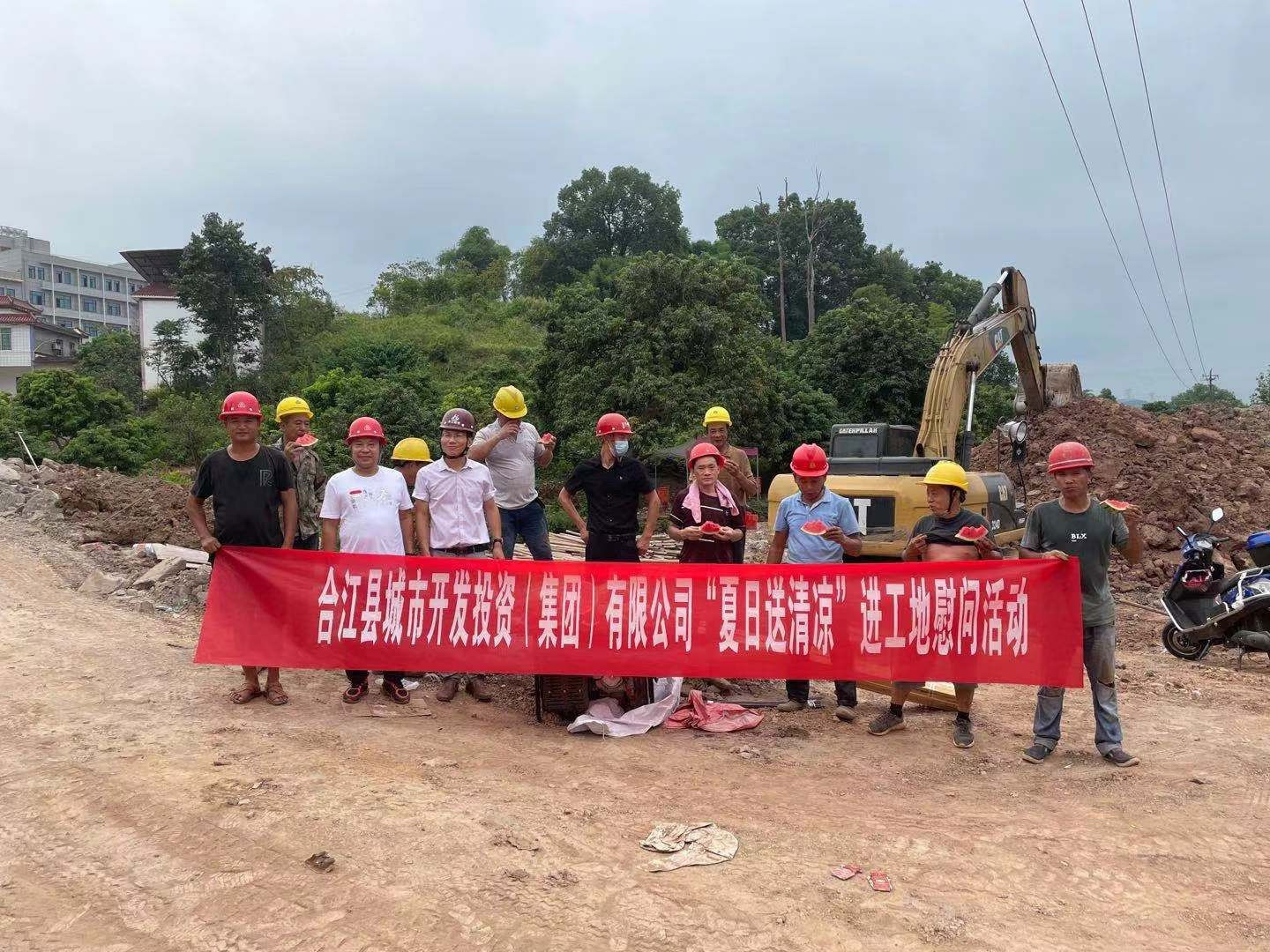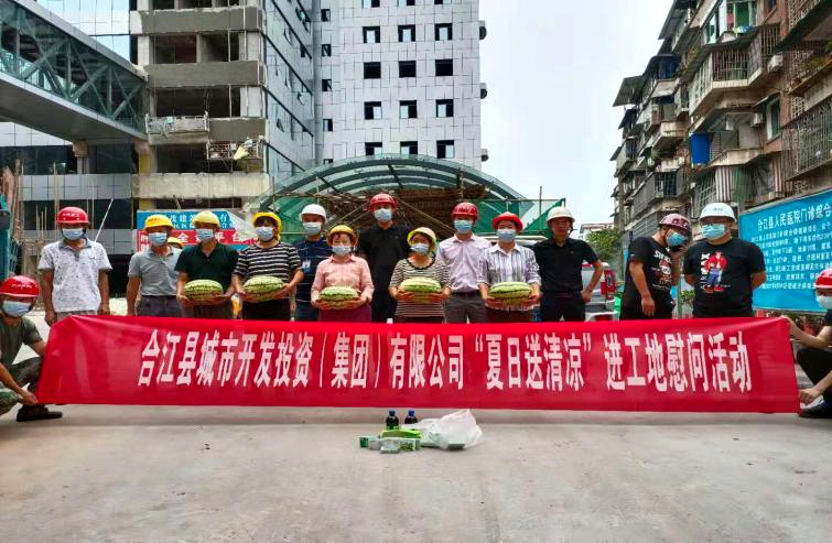 炎炎酷暑,天氣持續(xù)高溫,為切實(shí)做好戶(hù)外一線(xiàn)職工防暑降溫工作,2021年8月7日,合江縣城市開(kāi)發(fā)投資(集團(tuán))有限公司開(kāi)展“夏送清涼暖人心凝心聚力鼓干勁”活動(dòng),合江縣城市開(kāi)發(fā)投資(集團(tuán))有限公司董事長(zhǎng)兼總經(jīng)理鞠志良、副總經(jīng)理陳磊、工程部部長(zhǎng)陳云峰等領(lǐng)導(dǎo)為高溫下堅(jiān)守我司建筑崗位等戶(hù)外一線(xiàn)職工送去夏日清涼,送去公司的關(guān)懷。