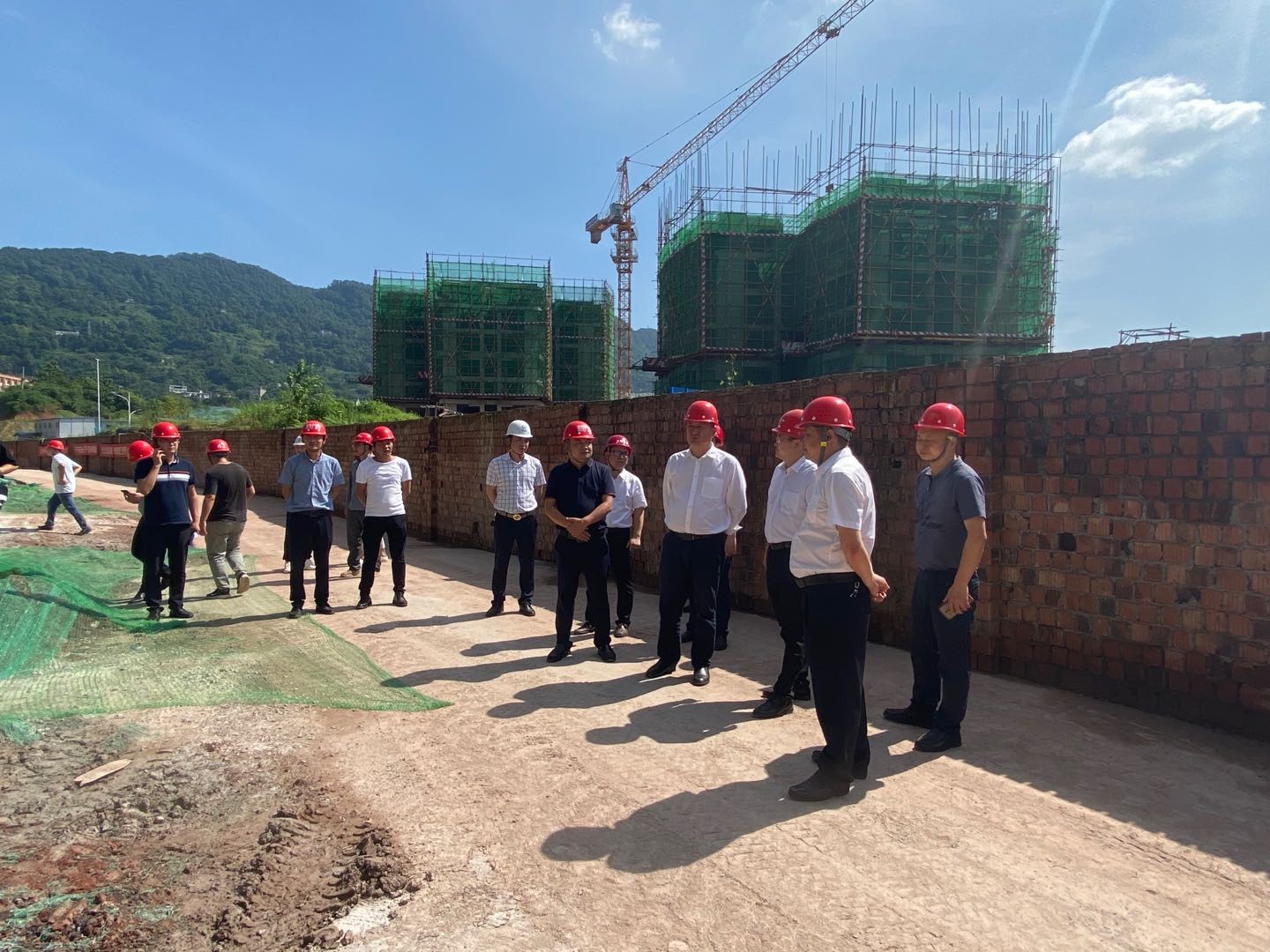 2020年6月24日,合江縣縣委書記李仁軍率隊(duì)到鑫晟學(xué)府項(xiàng)目開展端午節(jié)前安全生產(chǎn)工作檢查。縣應(yīng)急局、縣住房城鄉(xiāng)建設(shè)局、瀘州阜陽投資集團(tuán)等單位負(fù)責(zé)人陪同檢查。