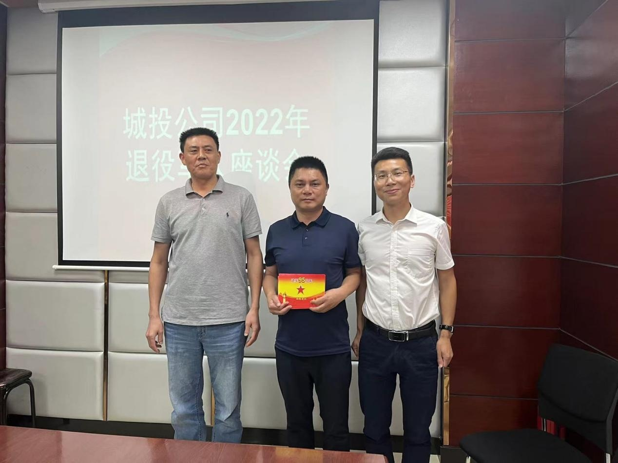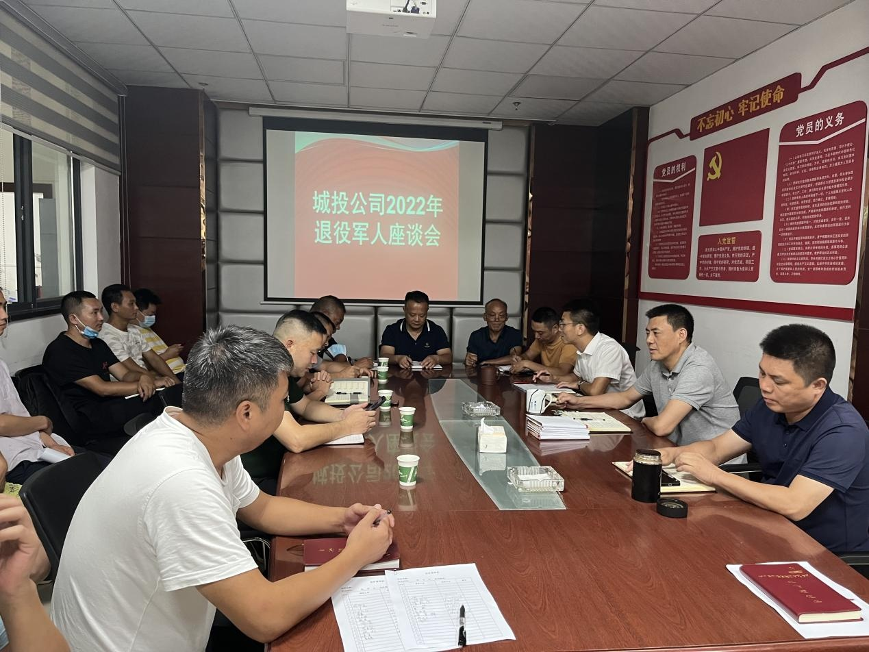 為慶祝中國人民解放軍建軍 95 周年, 2022 年 8 月 1 日 下午, 城投公司董事長兼總經(jīng)理鞠志良、 副總經(jīng)理陳云峰組 織召開退役軍人座談會。