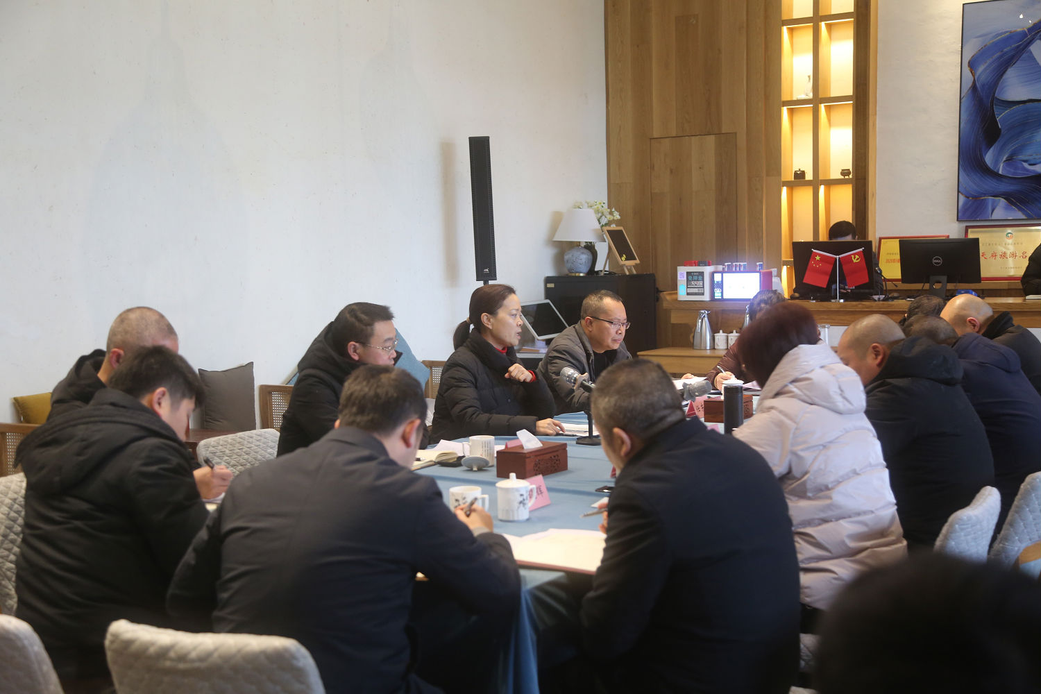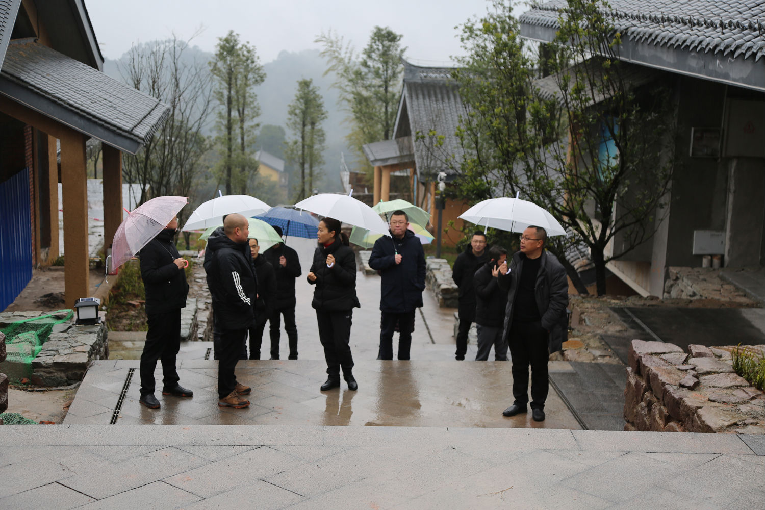 游啟君一行先到景區(qū)天街進(jìn)行現(xiàn)場(chǎng)勘查, 詳細(xì)了解了景 區(qū)工程進(jìn)度及預(yù)期運(yùn)營(yíng)方向, 隨后在法王寺龍掛山景區(qū)—半 山云舍召開了座談會(huì)。 會(huì)上, 集團(tuán)公司領(lǐng)導(dǎo)對(duì)景區(qū)前期建設(shè)、 運(yùn)營(yíng)工作給予了充分肯定, 并鼓勵(lì)文旅公司員工要繼續(xù)鉚足 干勁、整合力量來加快項(xiàng)目建設(shè),力爭(zhēng)早日全部投入運(yùn)營(yíng)。